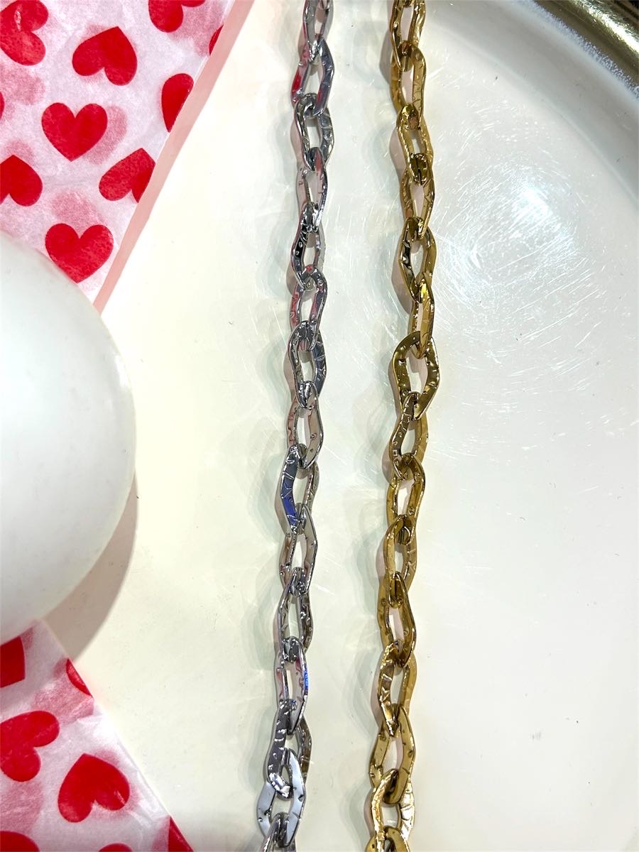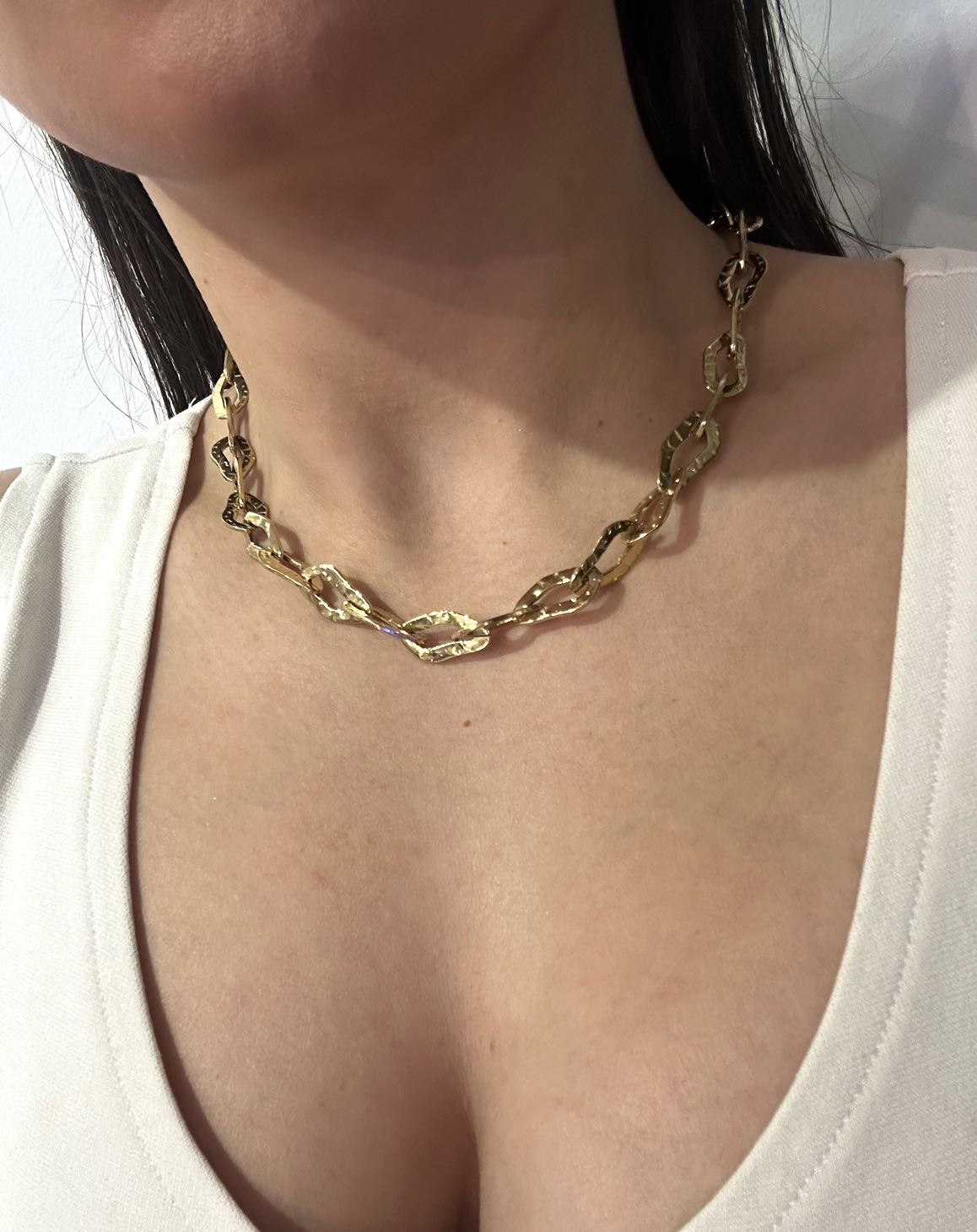 Ατσάλινο κολιέ με ακανόνιστους οβάλ κρίκους, δυναμικό και σύγχρονο, διαθέσιμο σε χρυσό και ασημί.
