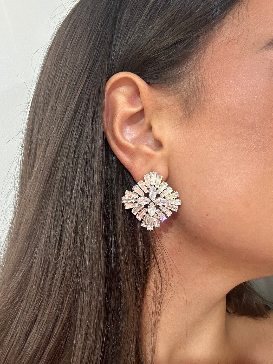 Τετράγωνο σκουλαρικι απο ορείχαλκο γεμάτο στρας. Η βασική του μορφή είναι τετράγωνη, ωστόσο κρέμεται από μία μόνο γωνία, προσδίδοντας του μοναδική γεωμετρική αισθητική σε σχήμα ρόμβου. Είναι σταθερό σε χρυσή βάση και είναι ένα μοντέρνο και κομψό αξεσουάρ που αναδεικνύει με στιλ κάθε εμφάνιση.