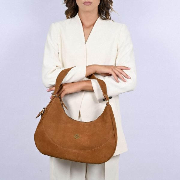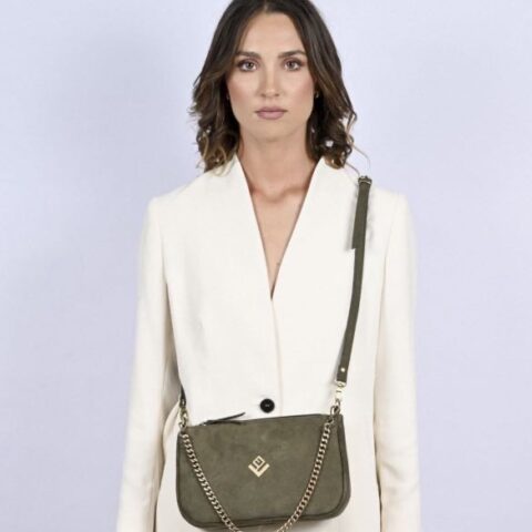 Κατασκευασμένη από 100% recycled suede leather, συνδυάζει ηθική επιλογή και υψηλή αισθητική. Οι δερμάτινες λεπτομέρειες και το φαρδύ λουρί ώμου εξασφαλίζουν άνεση και στιβαρότητα, ενώ το ευρύχωρο εσωτερικό της με υφασμάτινη φόδρα, τσέπη και ειδική υποδοχή κλειδιών προσφέρει πρακτικότητα στην καθημερινή χρήση.