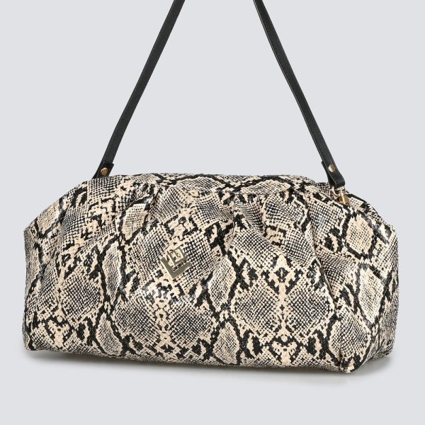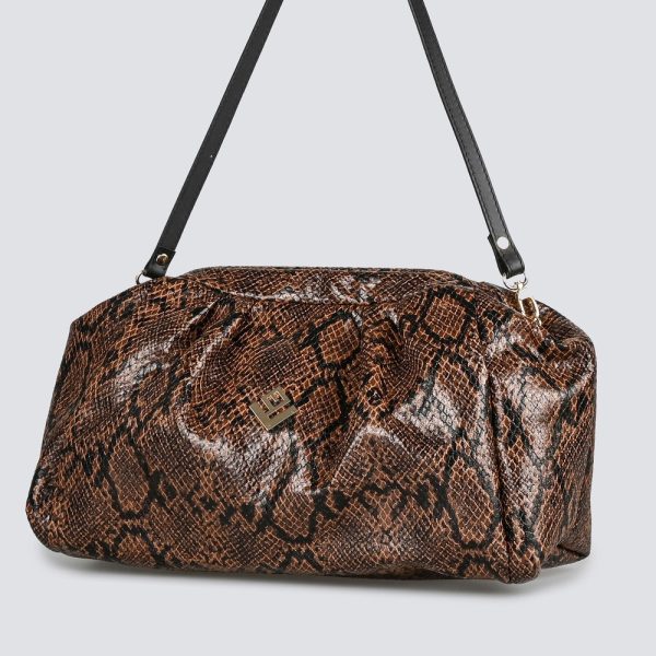 Η Paris Handbag συνδυάζει κομψές γραμμές με ανάγλυφο snake print για elegant αλλά ανέμελο ύφος. Διαθέτει δερμάτινο ιμάντα ώμου και πρακτικό εσωτερικό με φόδρα και τσέπη.