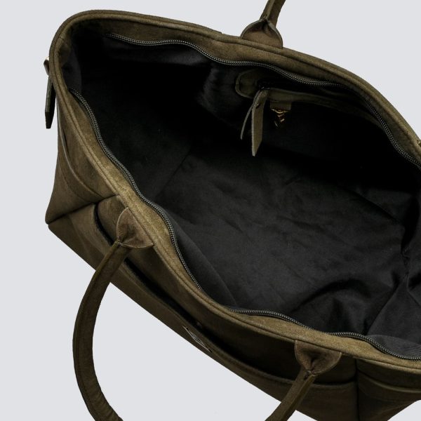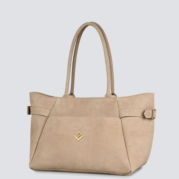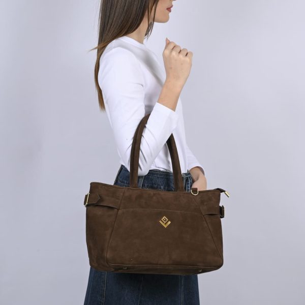 Κατασκευασμένη από 100% recycled suede leather, συνδυάζει μία reusable συνείδηση με πολυτελή αισθητική. Οι λεπτομέρειες από γνήσιο δέρμα και το ευρύχωρο εσωτερικό με υφασμάτινη φόδρα και ειδική τσέπη για κλειδιά εξασφαλίζουν ανθεκτικότητα, λειτουργικότητα και στιλ. Δερμάτινες χειρολαβές ύψους 21 εκ.