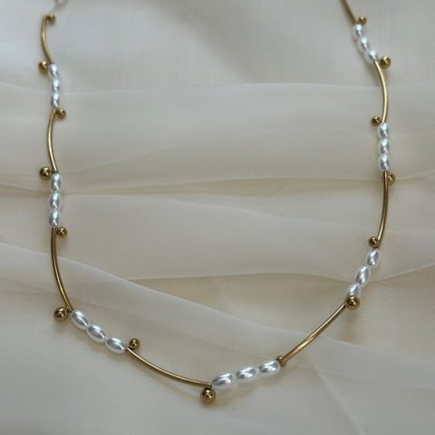 Εντυπωσιακό κολιέ με μεγάλες, γυαλιστερές χάντρες με νερά που χαρίζουν μοναδική λάμψη και κομψότητα σε κάθε εμφάνιση. Δένει με υφασμάτινη κορδέλα, δημιουργώντας έναν όμορφο φιόγκο στο πίσω μέρος του λαιμού για απόλυτα θηλυκό και ρυθμιζόμενο αποτέλεσμα.
