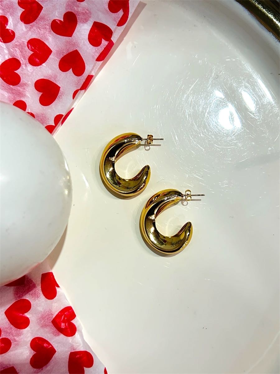 Σκουλαρίκια από ανοξείδωτο ατσάλι σε chunky σχήμα C, με λείο και απόλυτα γυαλιστερό φινίρισμα. Ο καμπυλωτός, συμπαγής σχεδιασμός τους προσδίδει όγκο και minimal αισθητική, καθιστώντας τα ιδανικά για καθημερινή χρήση αλλά και για πιο clean, μοντέρνα looks. Κλείνουν με καρφάκι και εφαρμόζουν σταθερά στο αυτί.