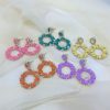 Κρεμαστά σκουλαρίκια με ζιρκον από ορείχαλκο σε βάση χρυσή . Δεν έχει κίνηση ενώ το καρφάκι του βρίσκεται στο άνω μέρος του κοσμήματος. Έχει αγκαθωτή μορφή με ενωμένα σταθερά ζιρκον σε χρώματα πράσινο ροζ κρεμ μοβ και πορτοκάλι.